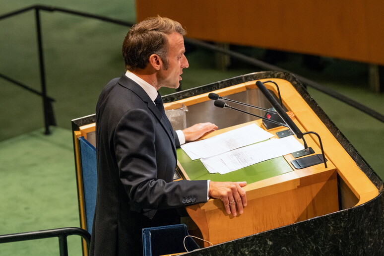 presidente francese Emmanuel Macron alla conferenza di alto