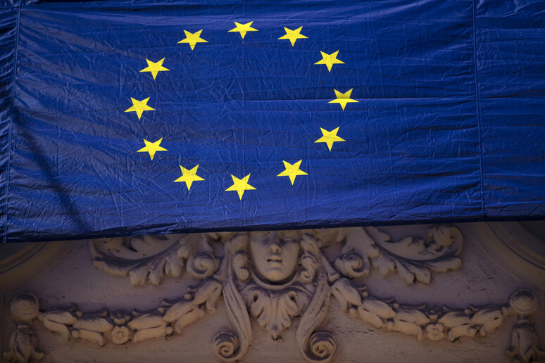 commissario Ue all'Economia Valdis Dombrovskis nella conferenza